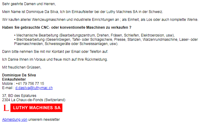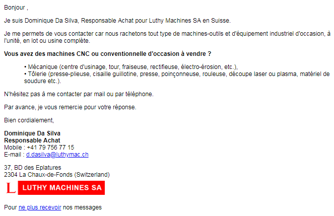 Solutions Machines-Outils souhaitait renforcer sa stratégie sur le plan international avec la vente et le rachat de machines-outils d’occasion de toutes sortes (mécanique, tôlerie, chaudronnerie). SMO a fait confiance à Business Link pour la gestion technique des campagnes d’emailing en plusieurs langues : Espagnol, Anglais, Allemand, Italien, etc.
