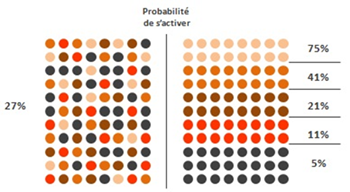 Selon leur comportement récent (date de dernier achat, montant et fréquence des achats.), Business Link peut classer les clients en segments comportementaux et leur appliquer une probabilité de s’activer dans l’année à venir.